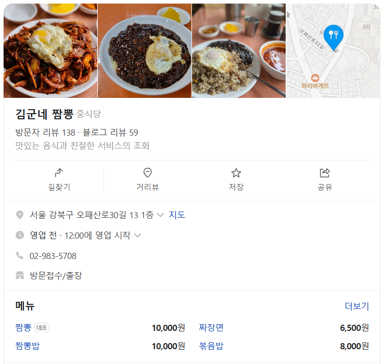 강북구 미아동에 위치한 '김군네짬뽕'은 SBS '생활의 달인'에서 탑티어 짬뽕과 중화비빔밥 달인으로 소개된 맛집입니다. 평범한 외관과는 달리 문을 열면 웨이팅이 끊이지 않는 인기 맛집이라고 합니다.